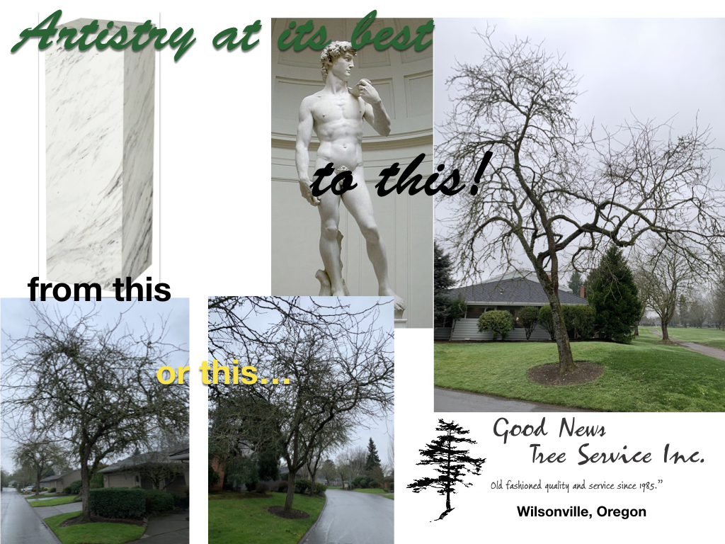 Since 1985, Nathan Lawrence and his company, Good News Tree Service, Inc. of Wilsonville, has been practicing the craft of aesthetic pruning with an eye on the naturally occurring beauty of each plant specimen as he is simultaneously informed and influenced by the scenic landscape of the Pacific Northwest region.